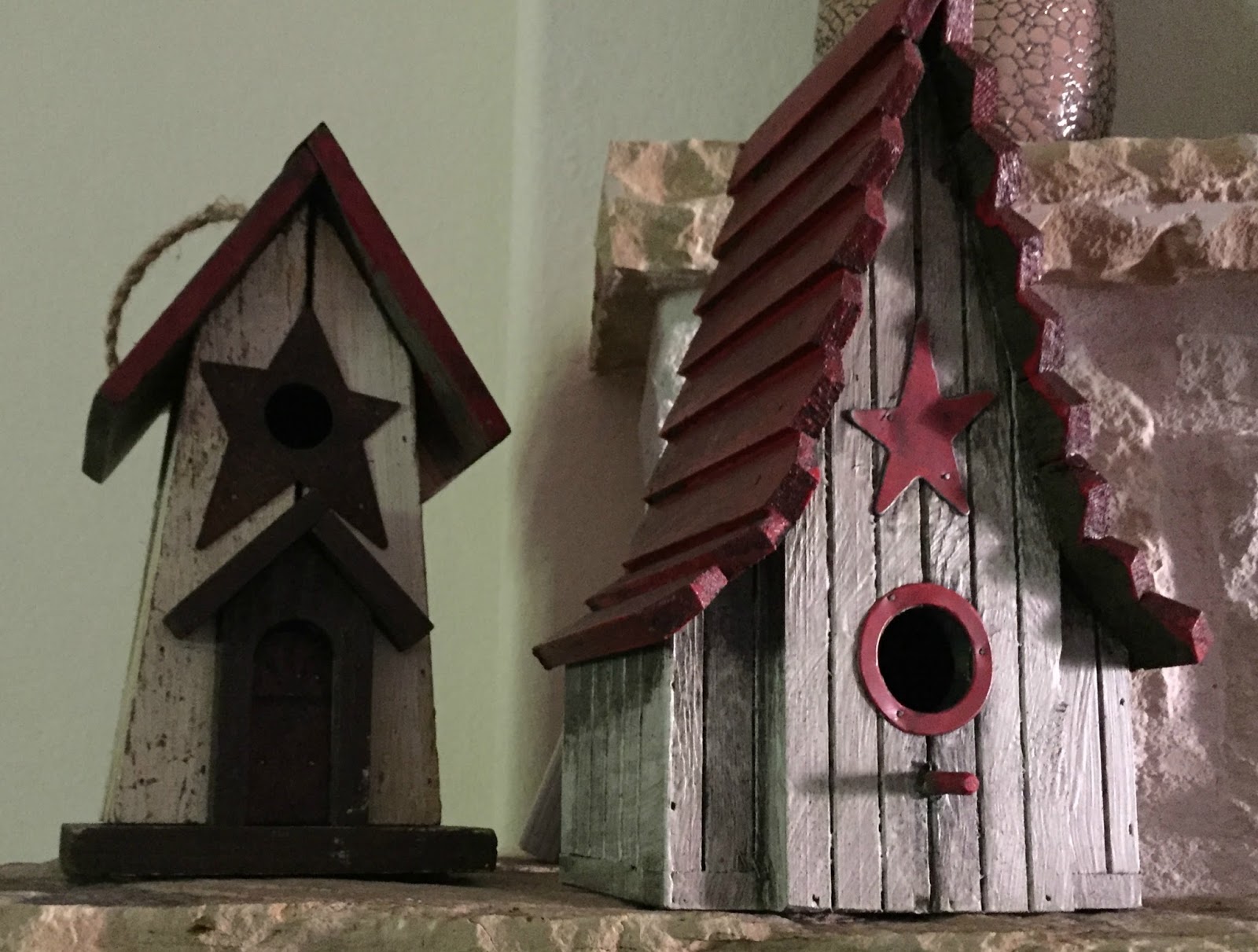 On a trip to Hobby Lobby I found two wood birdhouses and both had a star on them that reminds me of Texas. These houses will go perfectly on the mantel.